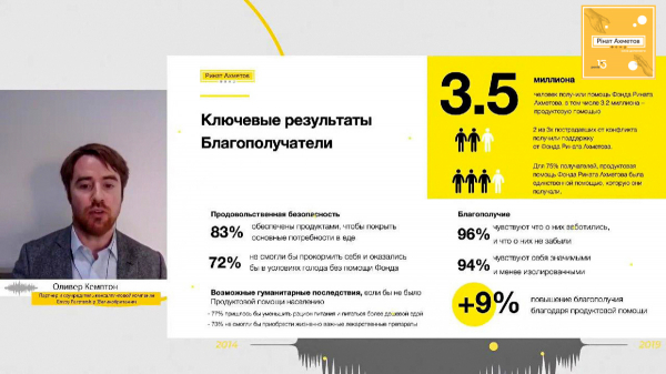 «Социальное влияние – это измерение и оценка результатов в монетарном выражении, где эти результаты включают социальные, экологические, финансовые и экономические изменения. Социальное влияние – это количественная оценка относительной важности изменений, которые люди переживают в своей жизни. Исследование показывает некоторые последствия вооруженного конфликта на Донбассе и то, как проект «Продуктовая помощь населению» Фонда Рината Ахметова повлиял на жизнь мирных жителей», – сказал партнер и соучредитель Envoy Partnership Оливер Кемптон.