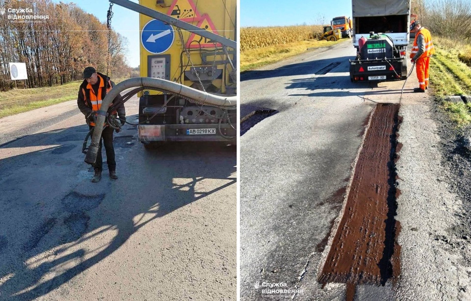 “В межах експлуатаційного утримання вибоїни дорожнього покриття усуваємо гарячим асфальтобетоном, тріщини та незначні дефекти заповнюємо ремонтним матеріалом під тиском – застосовуємо пневмоструменевий метод”, — інформує пресслужба Служби відновлення та розвитку інфраструктури.