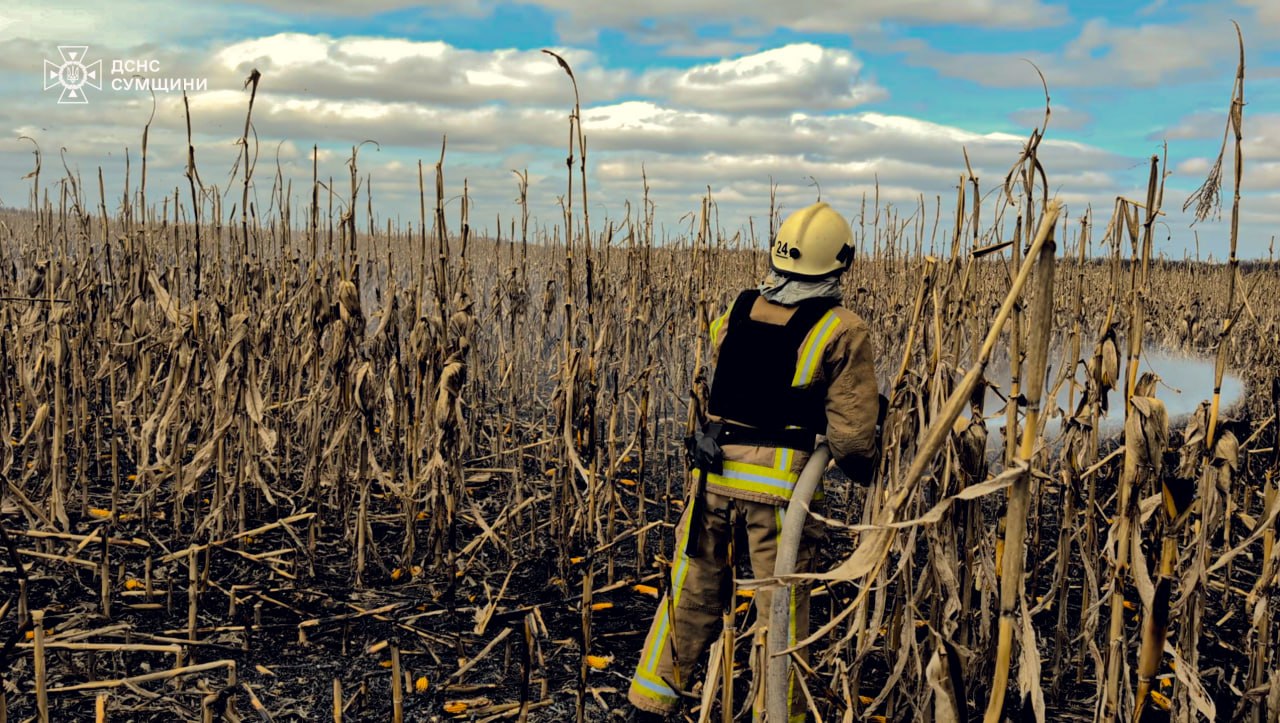 Зокрема в с. Рябушки, що на Лебединщині вогонь охопив суху рослинність на площі до 2 га. Утворилась загроза подальшого поширення вогню на розташоване поруч поле кукурудзи. Вогнеборцям знадобилось година часумайже 2 тонни води аби приборкати дану пожежу.