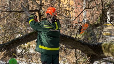 У Миколаєві тривають роботи з ліквідації наслідків негоди. Зокрема, комунальники разом з фахівцями ДСНС прибирають аварійні та повалені дерева, які впали внаслідок сильного вітру, дощу та обледеніння.