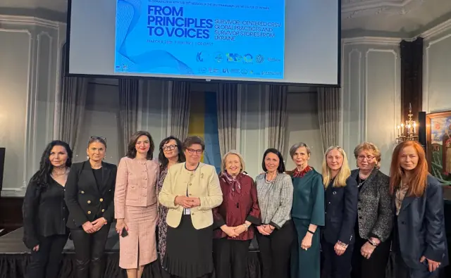 Захід 12 березня «From Principles to Voices: Survivor-Centered CRSV Global Practices and Survivor Stories from Ukraine». На фото: спікерки та запрошені гості заходу, серед яких Маріянна Заяць, Ірена Яросевич, Наталія Павленко, Посол Андрій Мельник, Мар’яна Беца, Катерина Левченко, Оксана Коник, Анатолій Досич, Христина Гайовишин та інші